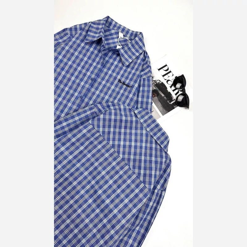 شومیز چهارخونه نخی تک رنگ سایزبندی 36تا42