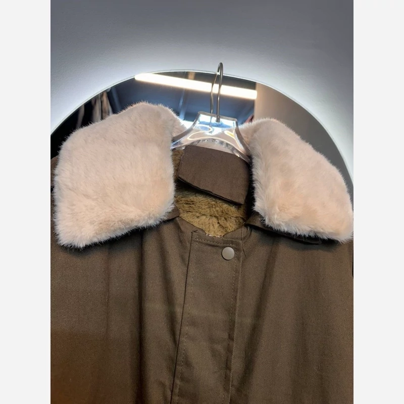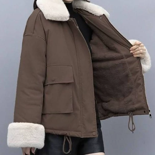 کاپشن کتان گرم بالا داخل خز دور یقه و آستین خر قابل جدا شدن رنگبندی قهوه ای و مشکی سایزبندی 38تا44 قد 65